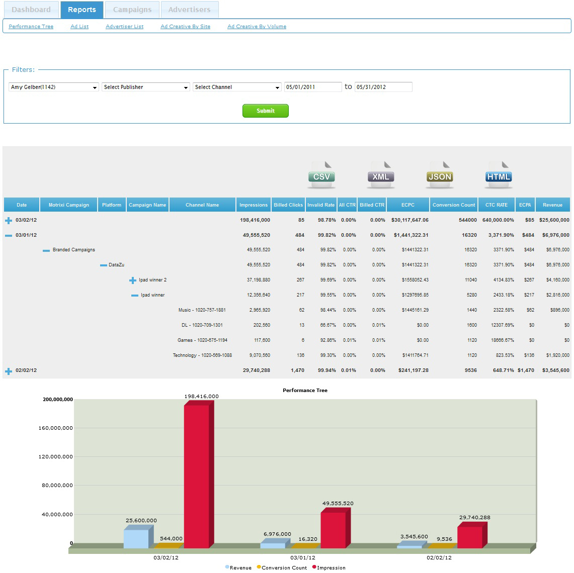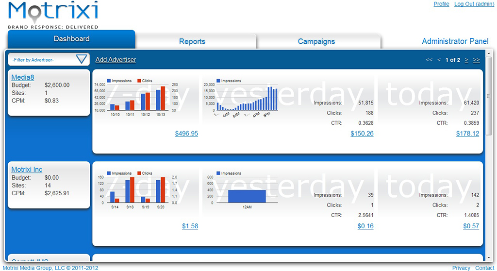 With Motrixi’s real time dashboard UI, you now have the capability to monitor your mobile campaign when YOU want and most importantly, all information is in real time. ANNEX will measure all elements of your creative (CTR, time spent, video views, click to map, etc) and will even show you what app/WAPs your clicks eminated from.