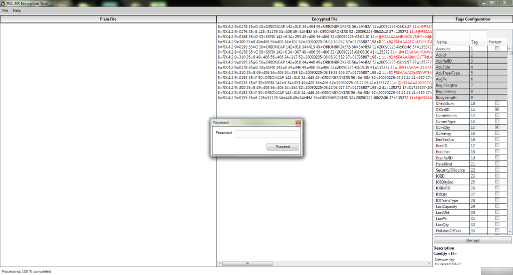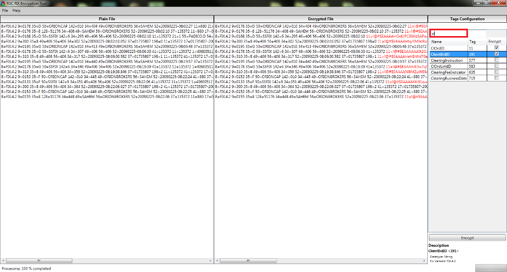 This application allows user the ability to encrypt any FIX field before giving out any data externally